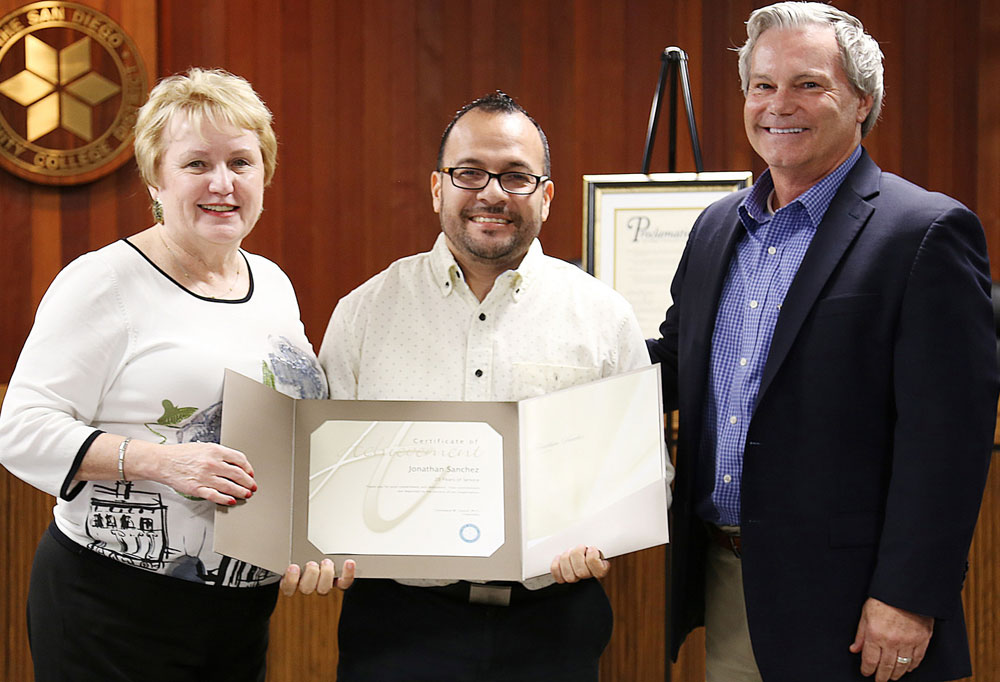 San Diego Community College District Chancellor Constance M. Carrol and members of the board of trustees honored district employees at the 33rd annual District Office Classified Employee Awards on Tuesday, May 17. The winners of the 2016 Outstanding Classified Employee of the Year Award were Caryn White and Amber Fair.